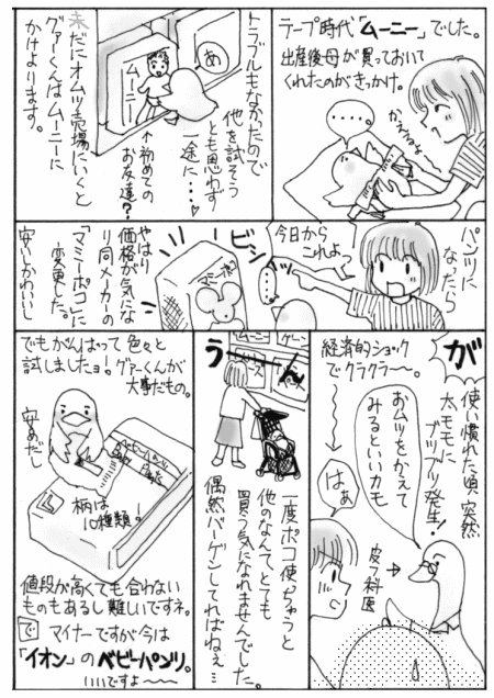 テープ式からパンツ型に替える時、さすがに迷い・・・思い切ってかなり安めなマミーポコパンツ に挑戦してみました。そしたら、またまた何も問題なく快適に使えちゃったので、パンツ型になったことでの経済的負担なんて、全く感じないくらいでした。