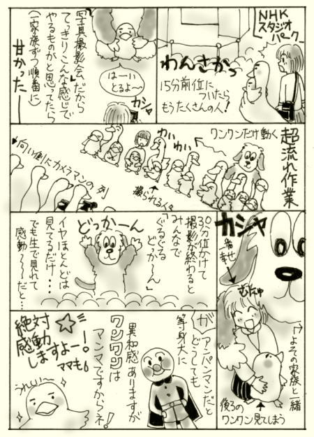 ゆっくり時間が取れれば、「おかあさんといっしょ」の撮影現場が覗けたですし、一箇所子供用にキャラクターを集めた場所もあったり、ビデオが流れていたり、あちこちにグーチョコランタンのキャラの絵があったり、それなりに全体も楽しめる感じでした。